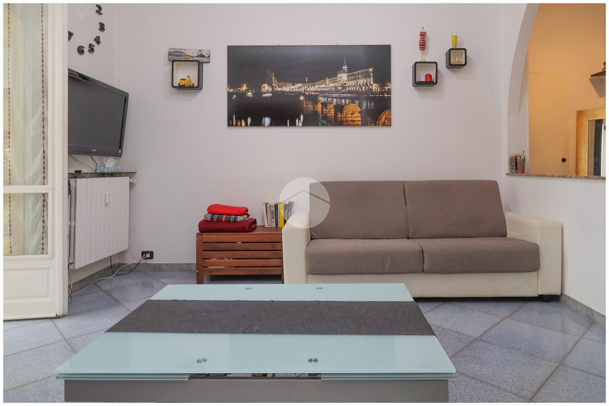 In contesto degli anni '70 in Via Luini nel cuore di zona Lucento. L'ingresso è living con la cucina a vista, la quale è lineare ed abitabile, con l'accesso sul primo balcone verandato lato cortile. La camera matrimoniale risulta luminosa, ampia e ben squadrata, il che ne facilita l'arredamento. ll servizio, è finestrato e provvisto di tutti i sanitari tra cui la vasca da bagno trasformabile in doccia. Inoltre vi è un doppio ripostiglio. Tutti gli infissi sono in doppiovetro. Completa l'immobile una cantina di pertinenza al piano interrato.