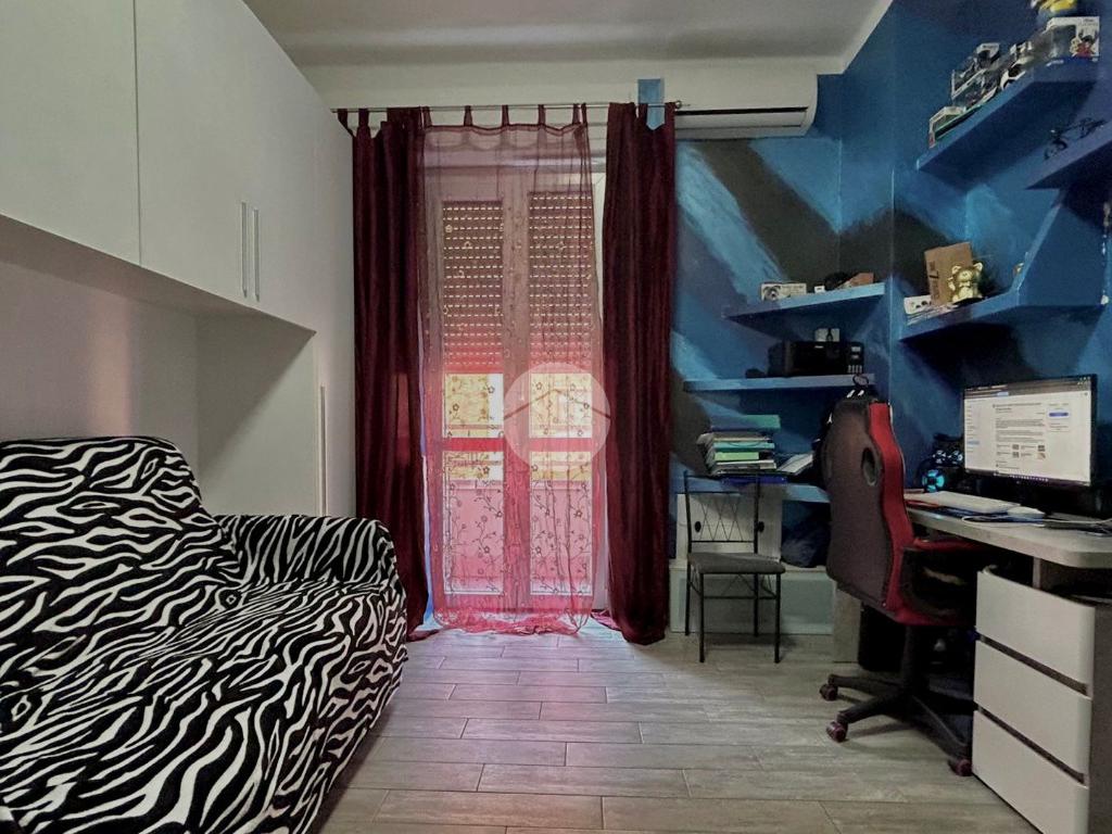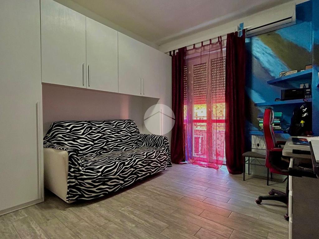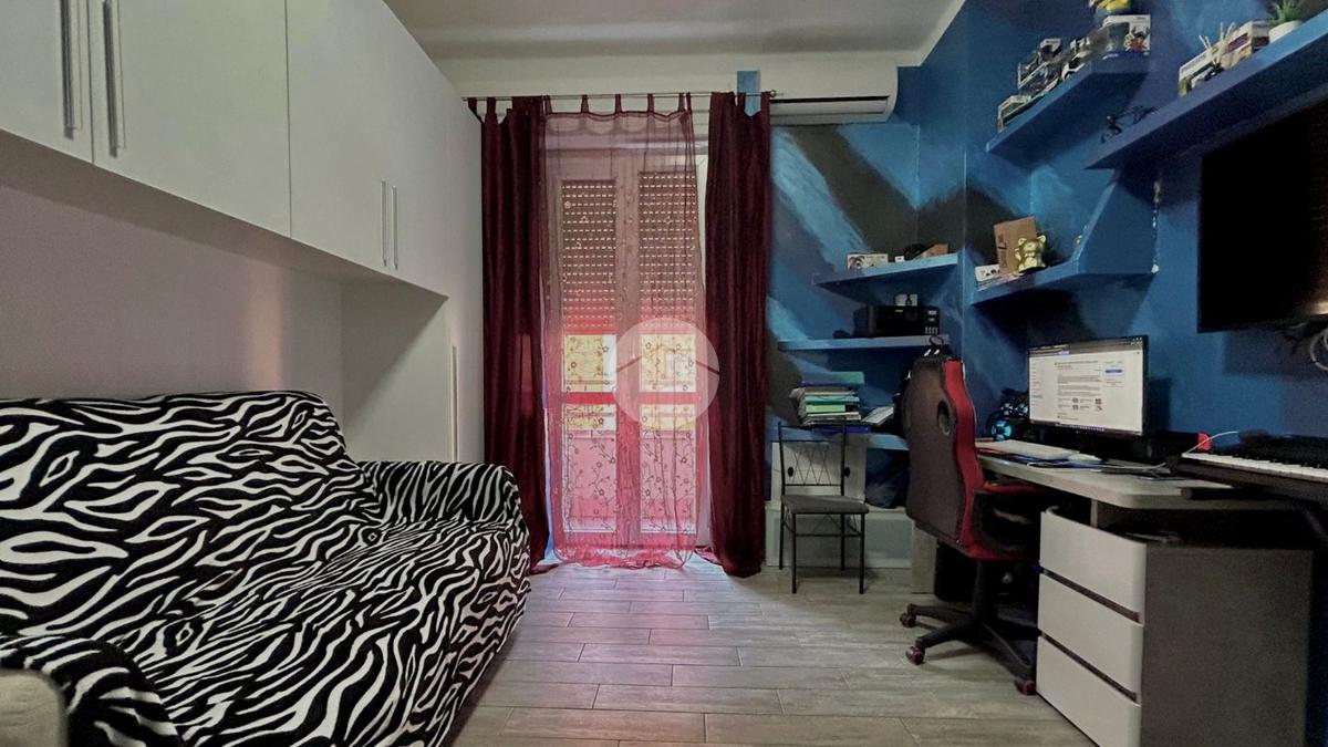 Situato a un piano intermedio, l'appartamento si compone di tre locali ben distribuiti: L'ingresso funge da disimpegno tra i vari ambienti, la cucina è abitabile e le camere da letto entrambe matrimoniali sono ben squadrate e hanno l'accesso al balcone, offrendo uno spazio esterno privato.